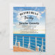 Des invitations à la retraite à thème voile avec le pont d'un bateau de croisière, l'océan, un beau coucher de soleil, et un modèle de célébration à la retraite facile à personnaliser.