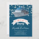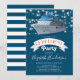 Cartes d'invitation pour une fête de retraite sur le thème de la navigation, avec le pont d'un bateau de croisière, des guirlandes lumineuses et un modèle de célébration élégant facile à personnaliser.