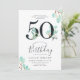 Une invitation amusante et fraîche 50e anniversaire avec des eucalyptus d'aquarelle frais en plein printemps entourant vos informations uniques de fête d'anniversaire. Il présente des numéros d'aquarelle couverts de végétation botanique sauvage. Au verso de la carte, un vert vif vient compléter l'avant.