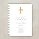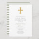 Invitation à la Première communion Croix à rayures vert sauge moderne.