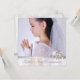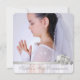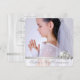 Élégante invitation de première communion fille argent et blanc. Cette belle invitation de première communion photo blanche est facilement personnalisable pour votre événement en ajoutant votre photo et les détails de l'événement, le style de police, la taille et la couleur de la police, ainsi que le libellé.