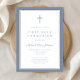Invitation Croix Bleue Dusty moderne Boy First Communion