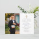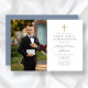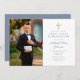 Personnalisée Croix Bleue Dusty Photo Boy First Communion Invitation. Une partie de la Dusty Blue Script Cross Boy First Communion Suite avec papeterie et accessoires de la première communion.