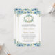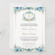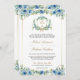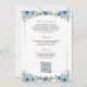 Invitation Croix catholique QR Code Mariage Floral Bleu Or