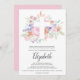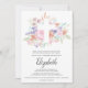 Elégant rose pastel doux, lavande violet et terre cuite couleur florale et bouquet de fleurs avec une croix chrétienne religieuse blanche. Une invitation simple et chic.