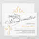 © Socialite Designs. Cette belle invitation de confirmation de calligraphie comporte une colombe et une croix de couleur or. Une invitation charmante qui est neutre en termes de genre et peut être utilisée pour un garçon ou une fille. Remplacez facilement le texte de notre modèle par le vôtre. Tous les éléments de conception peuvent être déplacés, redimensionnés ou supprimés.