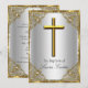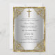 Invitation de Baptême Argent et Or. Élégant cadre en damas perlé et croix dorée. Personnalisez avec vos propres détails. Veuillez noter que toutes les images sont plates ! elles n'ont pas de véritables bijoux !