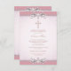 Élégant damas rose avec bordure florale et croix rose nacrée première invitation à la communion sainte fille. Cette jolie invitation de première communion damasée rose est facilement customisée pour votre événement en ajoutant les détails de votre événement, le style de police, la taille et la couleur de police et le libellé.