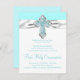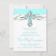 Invitation turquoise de première communion en bleu avec élégant ruban en diamant bleu et argent turquoise sur un beau arrière - plan bleu et blanc turquoise. Vous pouvez facilement customiser cette jolie invitation de première communion bleue turquoise en ajoutant les détails de votre événement dans la taille et la couleur de police, et le libellé de votre choix.