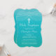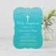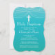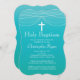 Belle Elegant Boy Holy Baptism invitation ou Stylish Christening invitation avec une délicate guirlande avec une croix blanche pendante sertie sur un arrière - plan chic et populaire bleu turquoise ombre. Retournez l'invitation pour trouver un fond sombre assorti. Disponible dans notre boutique dans une variété de couleurs pour une petite fille ou un bébé garçon.