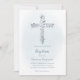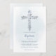 Invitation Croix de l'aquarelle bleu-gris du baptême