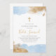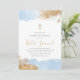 Une aquarelle bleu moderne et une invitation au baptême de parties scintillant en faux or. Le design parfait pour vos petits garçons baptisant ou baptisant.