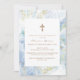 Invitation Croix dorée en agate bleue élégante pour baptême d