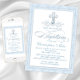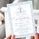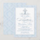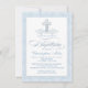 Invitation de baptême en damas bleu pour garçons avec croix en perle bleue et écriture élégante sur un joli fond en damas bleu bébé. Cette invitation de baptême élégante en damas bleu est facilement personnalisable pour votre événement en ajoutant simplement vos détails dans le style de police et la couleur, et la formulation de votre choix.