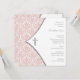 Invitation de baptême élégante en damas rose. Cette belle invitation de baptême avec croix en damas rose et argent est facilement personnalisable pour votre événement en ajoutant vos détails d'événement, style de police, taille et couleur de police, ainsi que le texte.