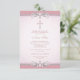 Élégant damas rose avec bordure de défilement floral et croix rose perlé invitation de première communion de fille. Cette jolie invitation de première communion en damas rose est facilement personnalisable pour votre événement en ajoutant vos détails d'événement, style de police, taille et couleur de police, et libellé.