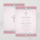 Invitation Croix en damas rose Première Communion