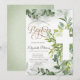 Invitation Croix florale de baptême à feuillage d'eucalyptus