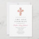 Carte d'invitation de la première communion religieuse personnalisée Pink Floral Cross.
