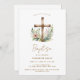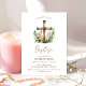 Invitation aimait les gens à une célébration chaleureuse du baptême ou du baptême avec cette invitation à croix fleurie rustique. Doté d'une charmante croix en bois ornée de délicats motifs floraux, ce design allie chaleur naturelle et touche spirituelle. Les tons terreux et les délicats détails floraux créent une atmosphère accueillante et paisible, parfaite pour célébrer cette occasion sacrée dans un style rustique et élégant.