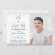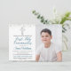 Parties scintillant Argent Cross Script First Communion Photo Invitation