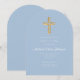 Invitation Croix religieuse Bébé Bleu Script Garçon Baptême A
