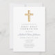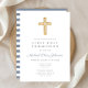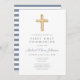 Dusty Blue Religious Cross Boy First Communion Invitation.