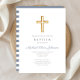 Personnalisé Religieux Croix Dusty Bleu Stripes Boy Baptism Invitation.