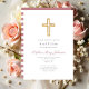 Invitation Croix religieuse Dusty rose rayures Girl Baptism
