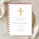 Personnalisée Religieux Croix Dusty Rose Stripes Girl Baptism Invitation.