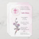 Invitation Croix rose douce & Fille florale Baptême Invitat I