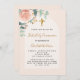 or rose, arrière - plan en arc de cercle, décoré d'un rose, végétation d'eucalyptus et d'une croix d'or. Personnalisez et un nom et des détails de la cérémonie. Lettres noires et dorées. Retour : arrière - plan rose d'or.