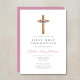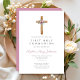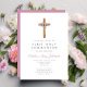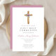 Invitation de communion personnalisée Cute Floral Pink Cross First Communion.