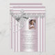 Pink photo first communion invitations with lace swirls and pearly cross on a beautiful gray and pink lace background. This pretty pink photo firfirst communion is easily customized for your event by adding your event details, style, font size & color, and wording. You can crop your photo and move the frame to wherever you need, as we make it smor larger. This a printed design with no real ribbons, bows, pearls, glitter, etc.