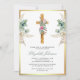 Invitation Croix Rustique Boho Pampas Eucalyptus Baptême