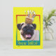 Invitation vos invités avec cette carte de voeux de chien Carlin fantaisiste. Avec un cupcake équilibré sur sa tête, ce design ne manquera pas d'apporter un sourire et des rires ! BTW, Cette conception a plusieurs versions, avec différentes couleurs arrière - plans. Il existe aussi une version Happy Birthday.