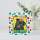 Invitation vos invités avec cette carte de voeux de chien Carlin fantaisiste. Avec un cupcake équilibré sur sa tête, ce design ne manquera pas d'apporter un sourire et des rires ! BTW, Cette conception a plusieurs versions, avec différentes couleurs arrière - plans. Il existe aussi une version Happy Birthday.
