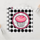 Une invitation avec un cupcake rose chaud surligné en noir dans un cadre rose et noir assorti.  Arrière - plan blanc avec pois noirs. Les fonctions latérales en face sont assorties à un arrière - plan à points polka avec du texte noir et rose sur le côté.  Personnalisez avec les détails de votre événement.