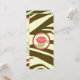 Une invitation avec un cupcake rose dessiné en marron dans un cadre rose et marron assorti. Le Arrière - plan est imprimé en zèbre marron et beige. Les fonctions latérales en face font correspondre le arrière - plan d'impression zèbre avec du texte brun et rose sur le côté pur. Personnalisez avec les détails de votre événement.