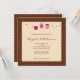 Cuisine et moderne invitation à la douche nuptiale. Palette de couleurs contrastées. Un cadre pois fait ressortir le design. Trois petits gâteaux roses, bruns et crème aux accents bordeaux et blancs. Les sauterelles apportent une touche ludique.
