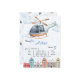 Celebrate your little one’s big milestone with this charming watercolor helicopter-themed birthday invitation! Featuring a soft blue helicopter soaring through fluffy clouds above a row of colorful houses, this design captures the joyful spirit of growing up. The gentle brushstrokes and pastel palette create a dreamy, storybook feel that’s perfect for young children’s parties.