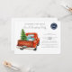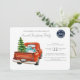 The front of this charming invitation is adorned with a heartwarming illustration of a classic red truck, making its way home for the holidays, with an illustration of a Christmas tree secured in the back. This image, brimming with nostalgia, encapsulates the joy and warmth that characterize this beautiful time of the year.