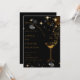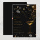 Elegant and stylish invitation card for a cocktail-themed party. Featuring a sophisticated black background with shimmering gold accents, sparkling stars, and a classy cocktail glass illustration, perfect for upscale corporate or social events.