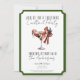 The classic green frame, modern typography, and personalized host line (“Santa says: It’s party time at…”) create a warm and stylish invitation that feels both chic and inviting. The reverse side features a coordinating red and green diagonal stripe pattern for a cohesive holiday look.