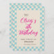 Invitation Custom Pastel Blue Checkered Birthday Party