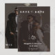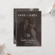 A stylish option for modern couples, this customizable chic black Save the Date invitation features elegant calligraphy paired with refined serif and modern sans fonts. The photo background on the front creates instant visual impact, while the back design includes a customizable monogram, photo, and event details, adding a refined and sophisticated finishing touch.