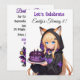 Cute birthday invitations for a girl's birthday party. A sweet anime girl in a fox ears hoodie holding a purple and black birthday cake. On the back is a cute anime dragon and your birthday party details.