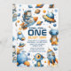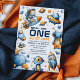 With a playful mix of bue and orange soft pastel tones, this gender-neutral invitation is perfect for both boys and girls who dream of cosmic adventures. The cheerful “3…2…1… Blast Off!” theme adds excitement and sets the tone for an unforgettable space-themed first birthday celebration.
