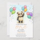 Invitation Cute Baby Panda Balloon 1st Birthday Party Peach