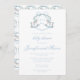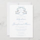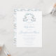 Explorez notre délicieuse invitation à la douche pour bébé vintage français qui présente un charmant et mignon cheval à bascule en bois bleu bébé avec fleurs printanières environnantes et crête de ruban arc. Ce design adorable est parfait pour accueillir votre petit avec joie et fantaisie.